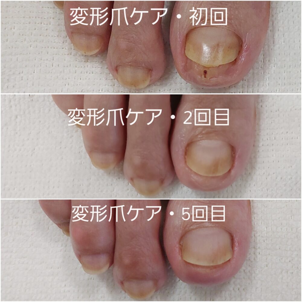 ジェルのつけっぱなしで変形爪になったお客様→爪が健康になって伸びてきました・小田原深爪育成・自爪育成 足の爪トラブル専門サロン ピピ