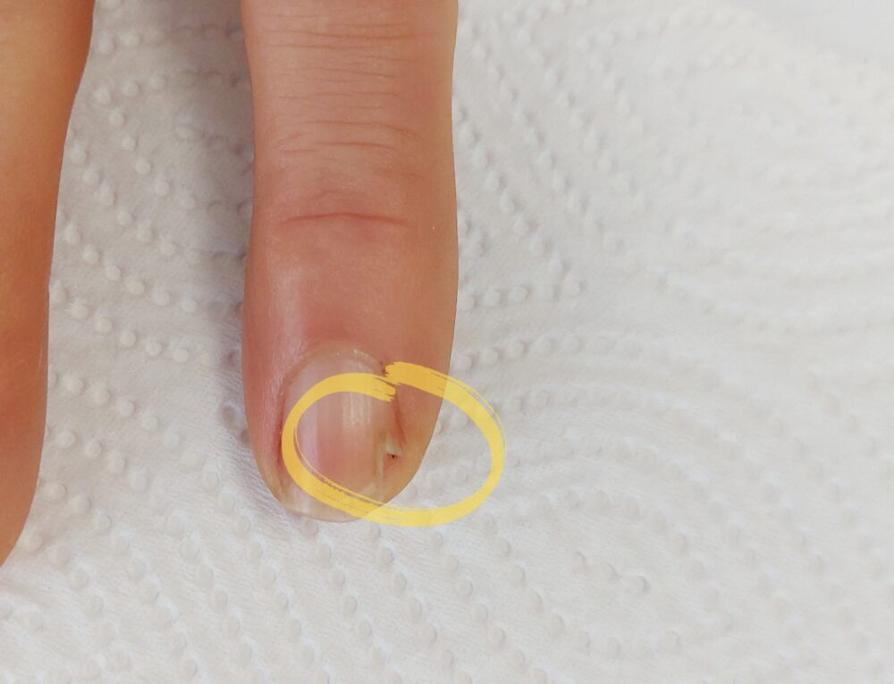 剥離して割れた爪。