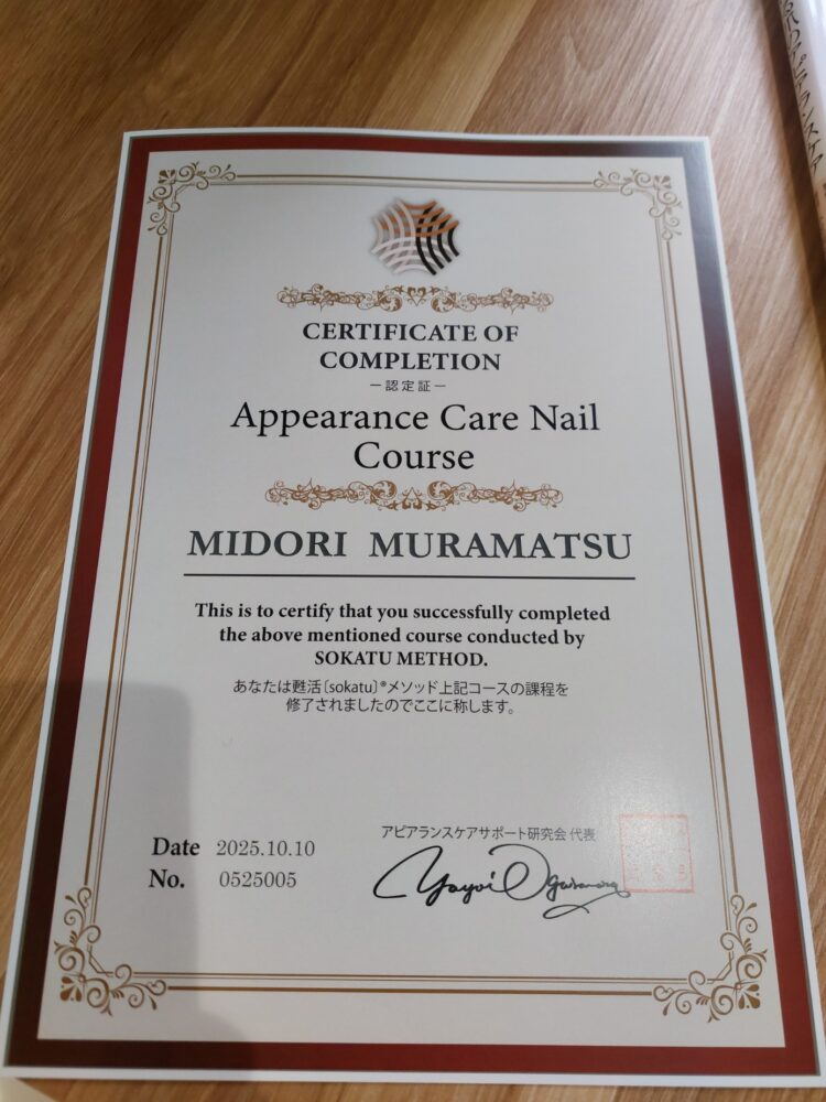がん治療における爪のアピアランスケアを無事に習得しました♪ ・小田原深爪育成・自爪育成・足のトラブル専門サロン ピピ