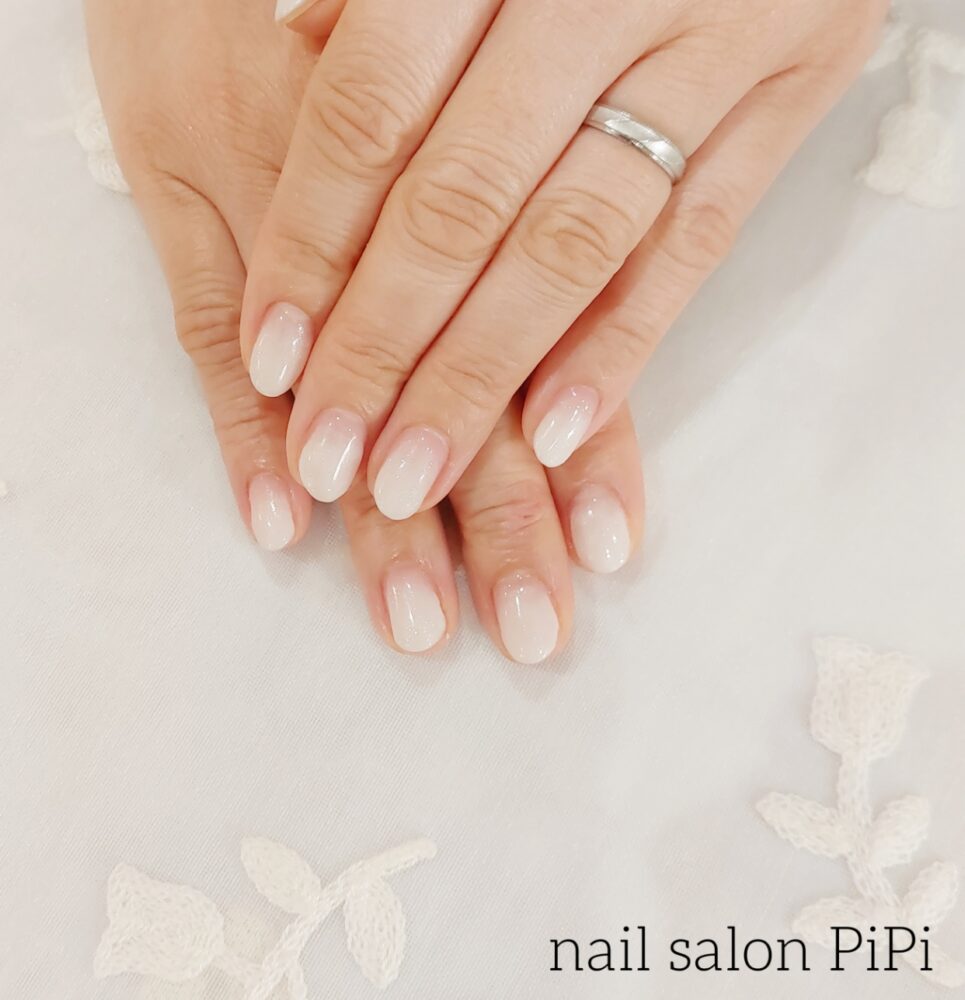クリームホワイトを使ったグラデーションネイル。