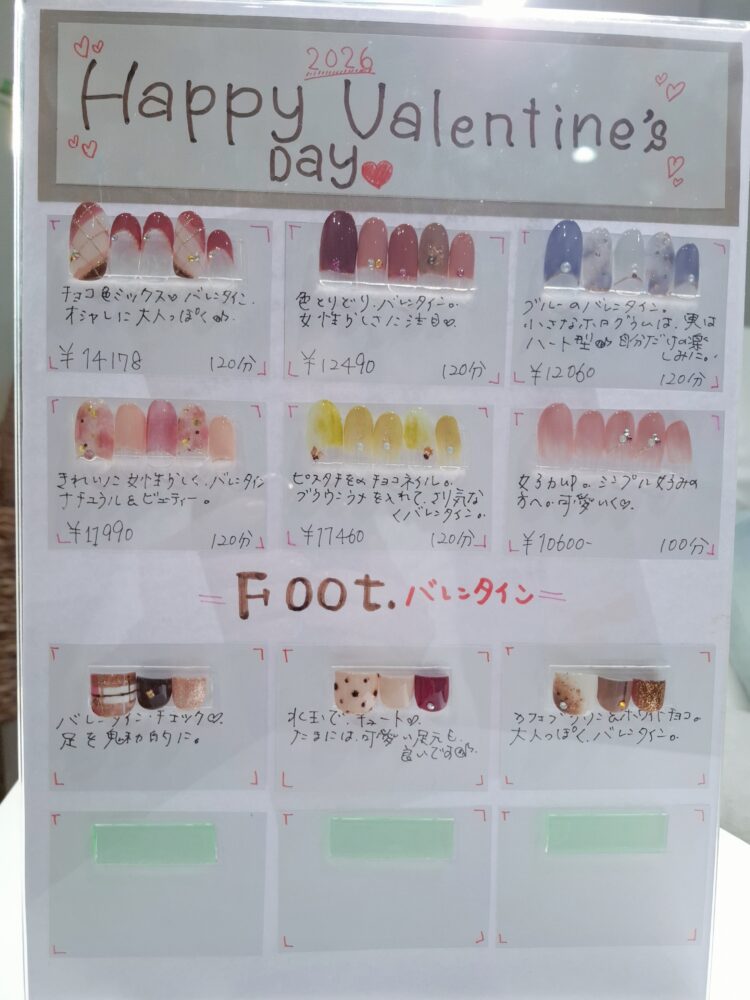 2026年バレンタインネイルサンプルが完成しましたー♪