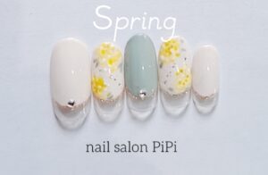 ・人気のミモザネイル。今年春も