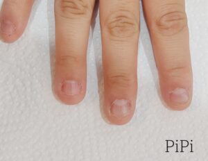 噛み癖と無意識の触り癖で、爪は短く、皮膚との境目も不安定でした。